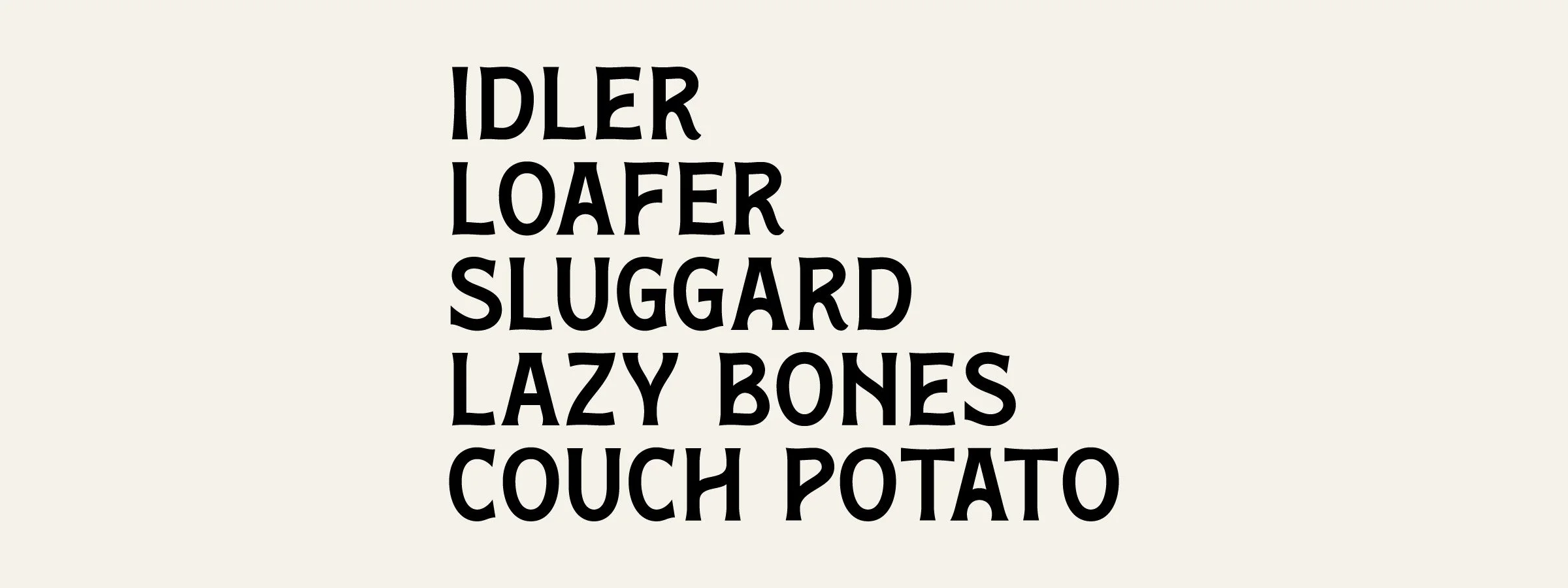 After being a work-in-progress for nearly three years, my latest typeface has finally reached the finish line. Named in honor of the incredible level of procrastination involved in its making, Slacker features an all-caps character set with flared serifs and wavy letterforms that are inspired by vintage coffee tins and packaging. I may have put this little guy on the back burner a few too many times, but it was built through hours of tedious work and is finally ready to see the world.